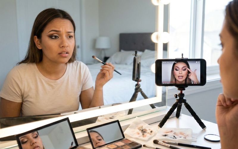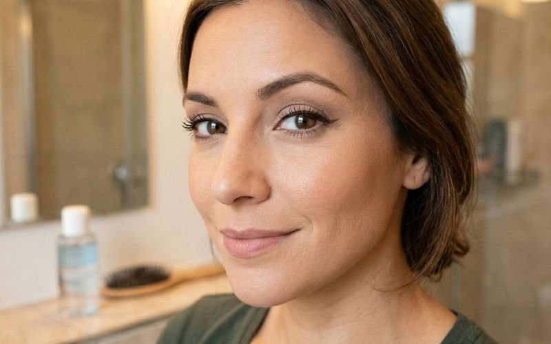 For a quick everyday look, a skin-tone-matching matte base, a warm transition shade blended above the crease, a swipe of tightliner, and a coat of curling mascara is genuinely all you need. It takes under five minutes and creates a polished, wide-awake result.